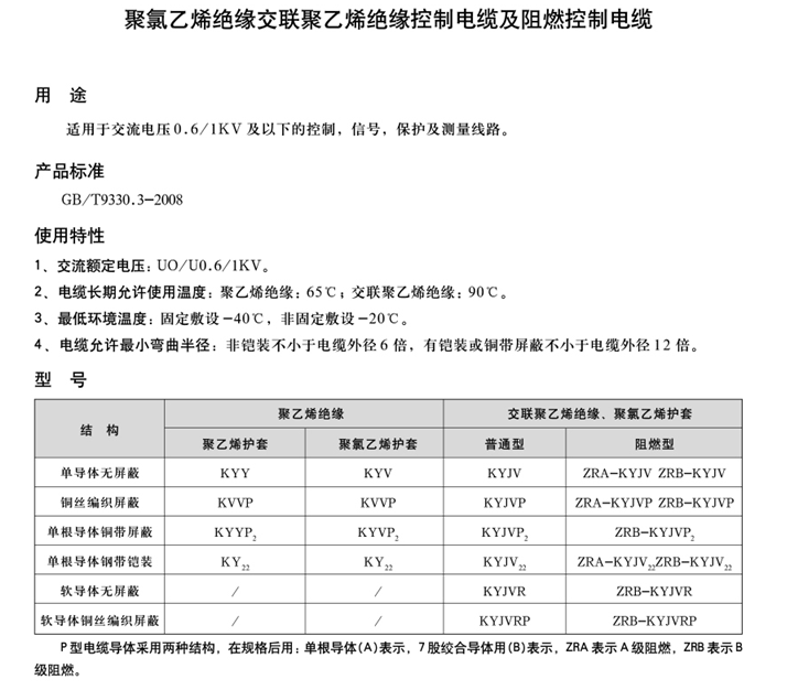 聚氯乙烯绝缘交联聚乙烯绝缘控制电缆及阻燃控制电缆